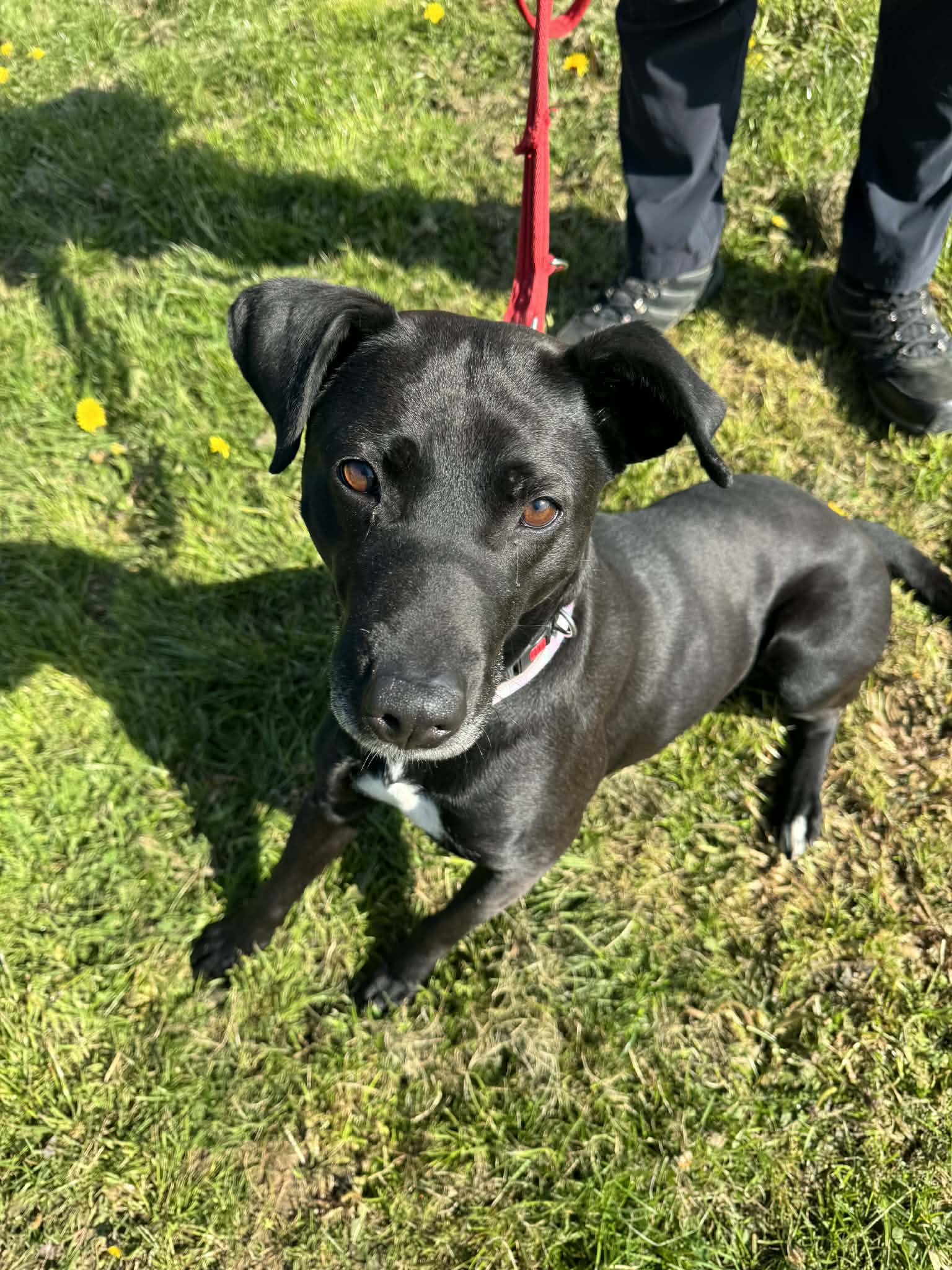 Sheeba has been attending training classes and has made great progress. She knows her basic commands, her recall is improving, and she’s become much better at meeting other dogs, though she may still bark at the occasional one close to home. On the lead, she walks nicely and is comfortable wearing her Dogmatic headcollar.